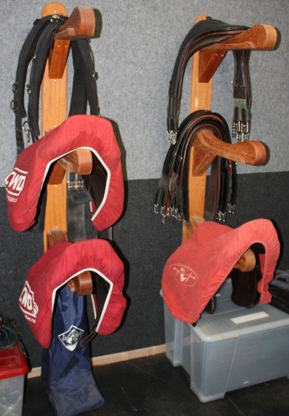 Een goed ingerichte zadelkamer begint bij stevige ophangsystemen. Schuurman Omheiningen produceert zadelhouders en hoofdstelhouders van hardhout – een robuuste houtsoort die perfect bestand is tegen vochtige omstandigheden en dagelijks gebruik. Door te kiezen voor hout in plaats van metaal, geef je je zadelkamer bovendien een warme, natuurlijke uitstraling.